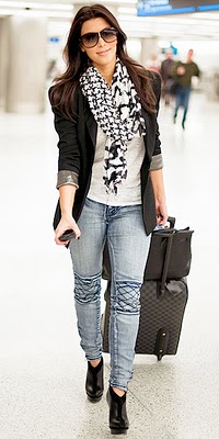 {Kim – I couldn’t resist a second picture that is a great example of how to update jeans for a classy airplane ride.}