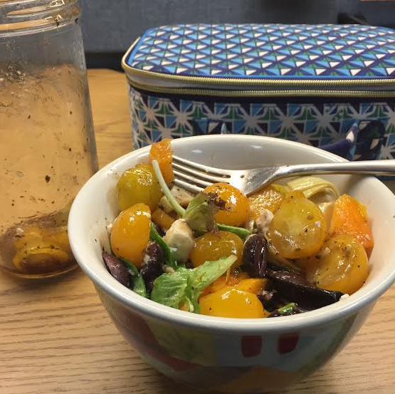 What’s so great about the salads is that the dressing is in the mason jar. You don’t have to have a separate container for dressing. You just grab the jar and go.