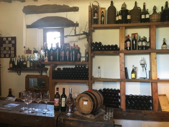 [First winery was a small family-run production – the wine was delicious, we met two adorable dogs and we tried grappa (definitely not for me…)]