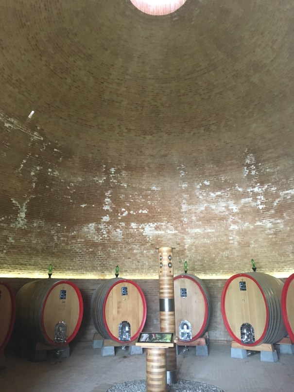 [Final stop was definitely the most unique and produced our favorite (albeit most expensive) wine – this winery is super modern, entirely biodynamic, and started by the very wealthy brother of Illy coffee (who we happened to see leaving for holiday in his Porsche while we were there)]