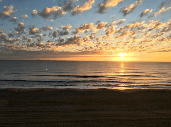 [post-dinner walk along the beach with beautiful views of the skyline]