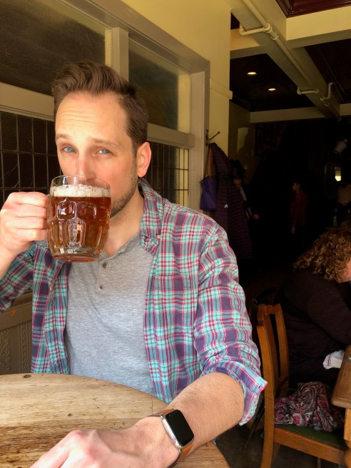 [brunch at the cutest place The Dandelion british pub with the cutest husband. also it was 75 degrees (!!!) and we got to sit in the little balcony and people watch]