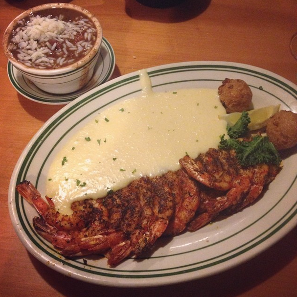 {final meal – shrimp and grits perfectly peppery shrimp and amazingly cheesy grits}