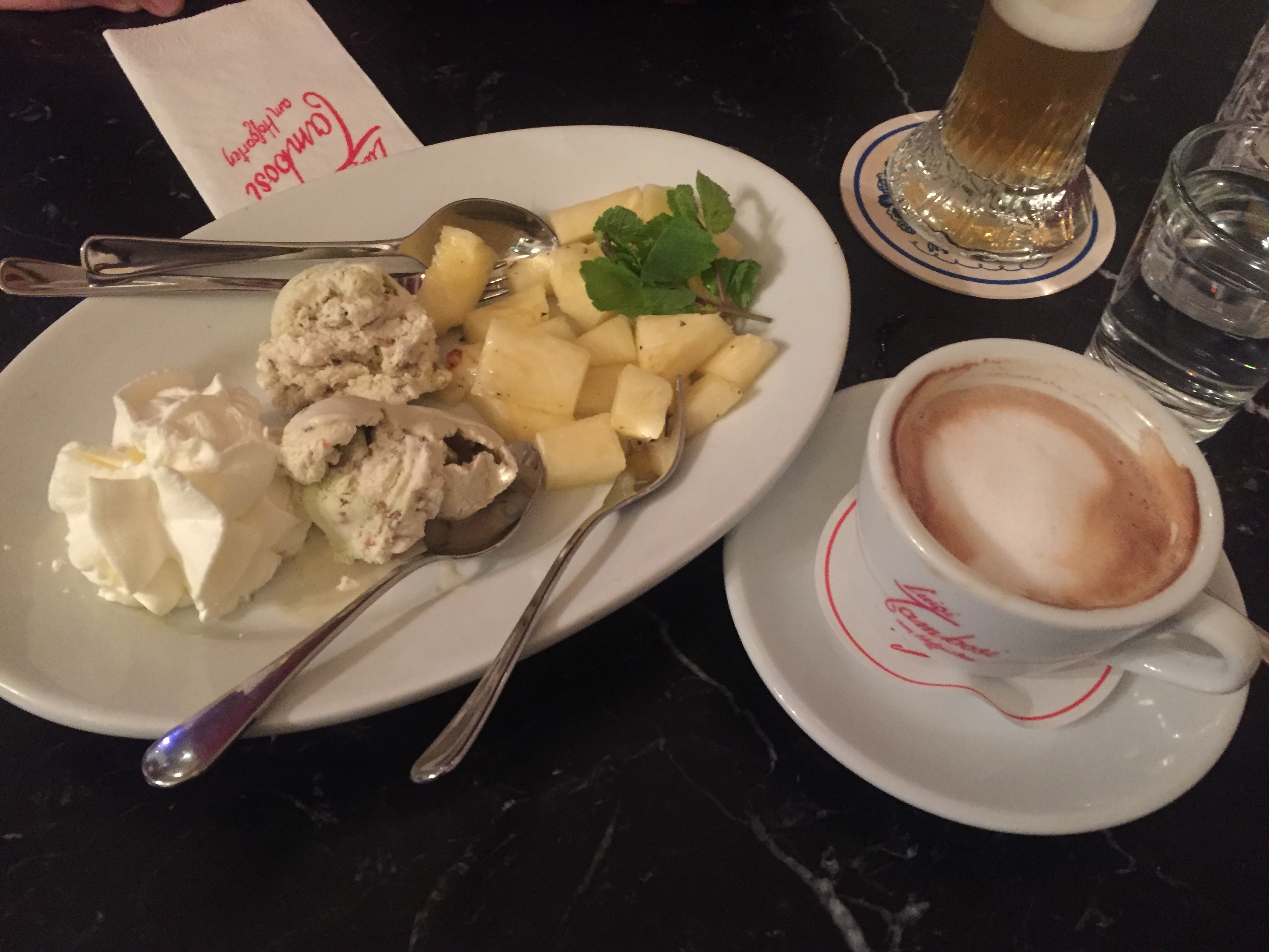 [The wait for our pizza was 40 minutes, so of course I decided I needed dessert first – Dulce De Leche Gelato]