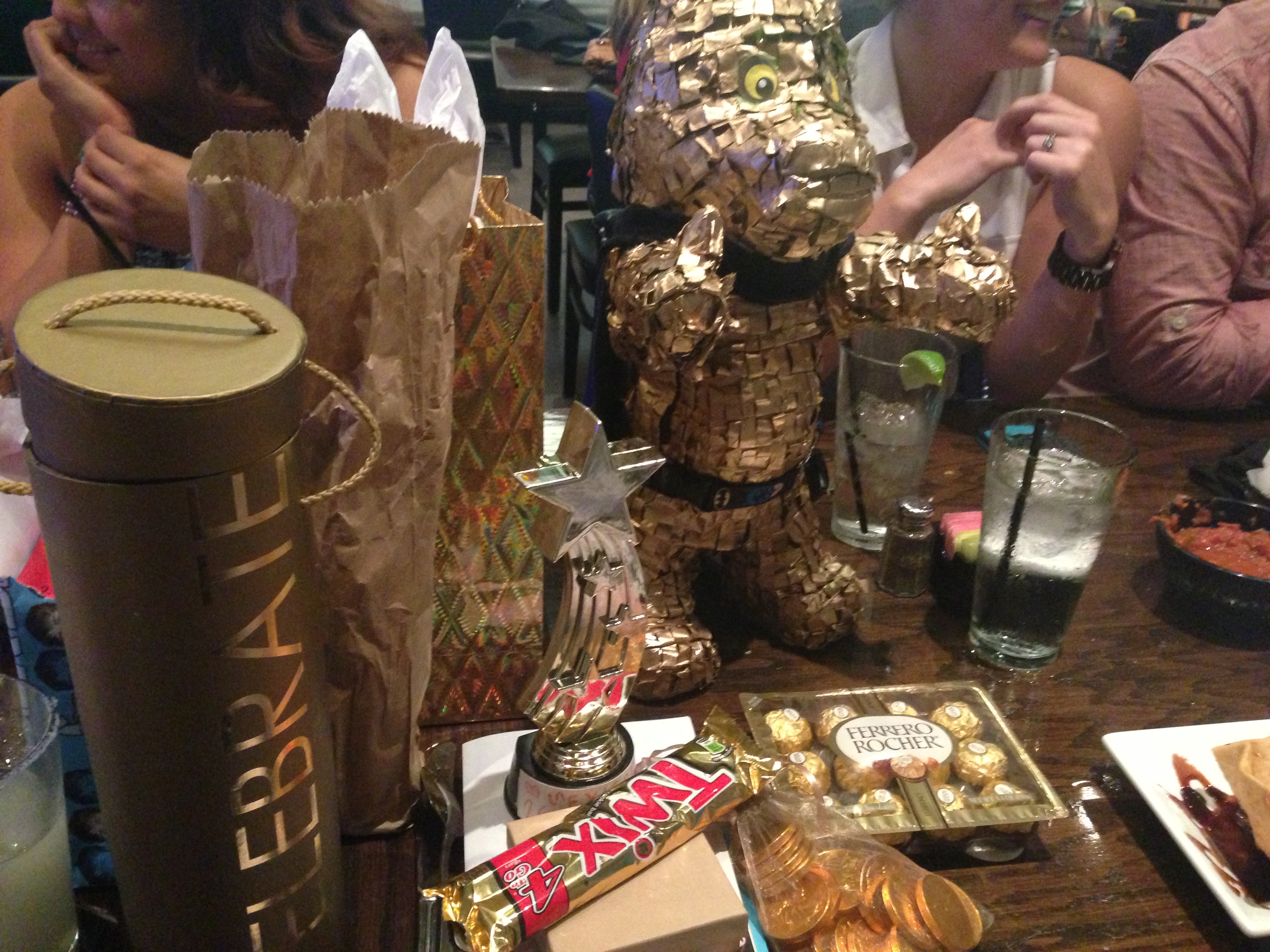 This year is Husband’s golden birthday, turning 26 on the 26th (which will be my golden birthday too in a couple years!) So I decided to do something a little fun and asked everyone to bring something gold to his birthday dinner.