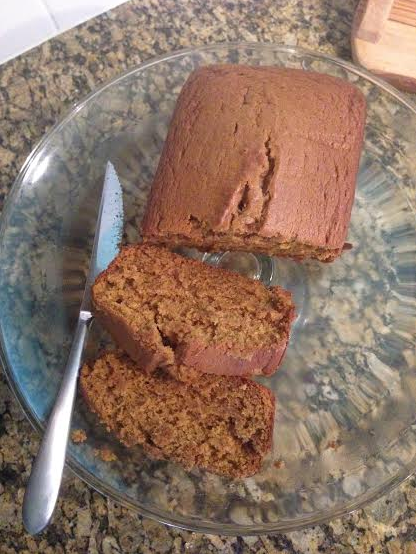 - Spread the batter into an even layer in the prepared pan. Bake for about 1 hour or until a toothpick inserted in the center comes out clean. Let the loaf cool in the plan for 10 minutes, then turn out onto a rack.