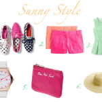1. Keds for Kate Spade New York; 2. Chino Shorts, J. Crew; 3. Textured Peplum Top, Banana Republic; 4. Henry, Marc by Marc Jacobs; 5. Mani Pedi Fund Cory Pouch, Rebecca Minkoff; 6. Summer Straw Hat, J. Crew