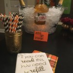 {drink table, including my signature drink: apple cider mimosas (delish!)}